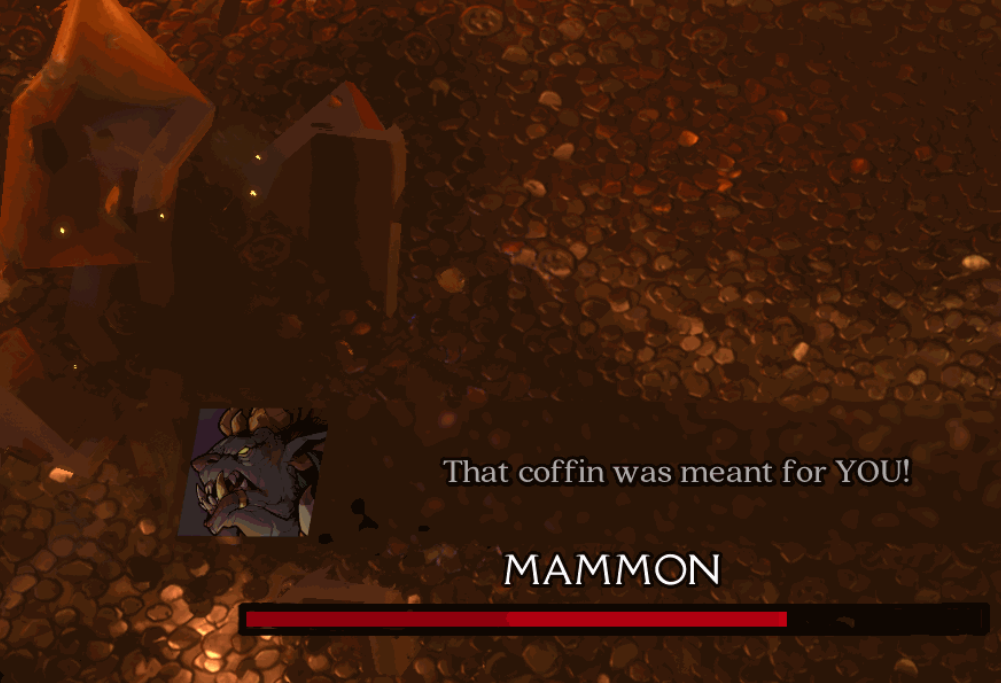 True to our original inspiration, a key Mammon ability is his gold dive into his hoard to avoid threat, reposition, and even damage the player on emerge.