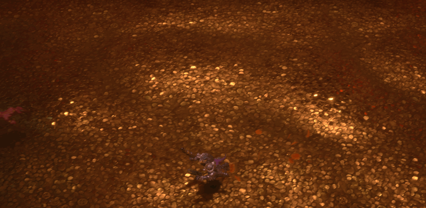 Mammon is a Demon Lord and avarice incarnate, and one directive in working on this fight was to have his fight take place in his hoard full of gold and treasures. It was only natural we had instant parallels to Scrooge McDuck and his signature swan dive into his pool of gold coins.